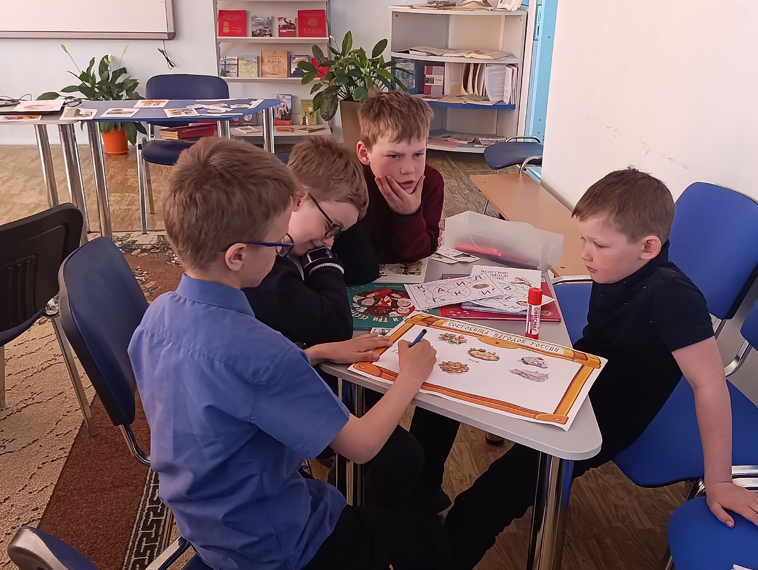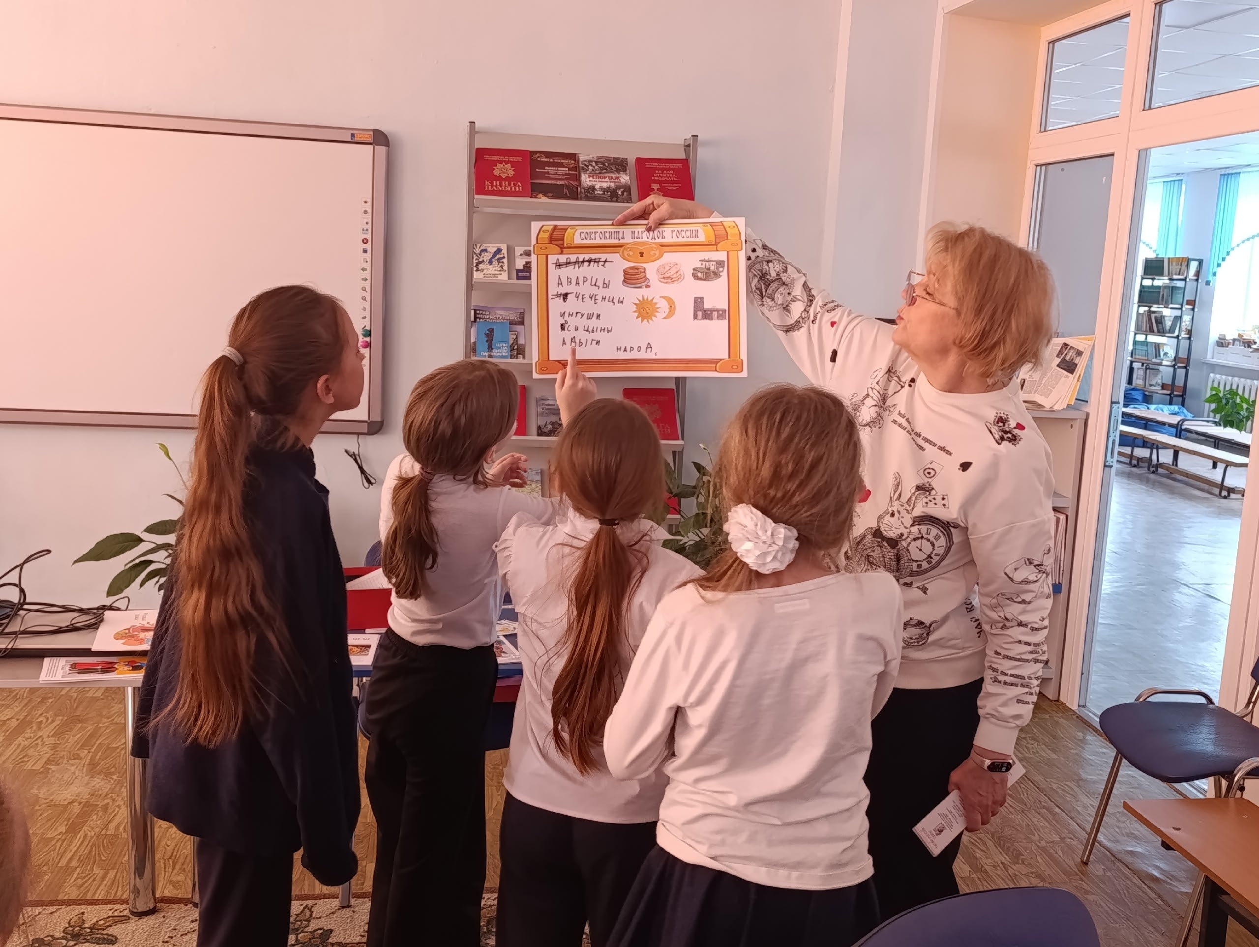 2026год — Год единства народов России. Для учащихся 3-4 классов МОУ Копорская школа, главный библиотекарь отдела обслуживания ЛОДБ — Дружинина Анжела Павловна привезла литературно — познавательную викторину — занятие «Суперсила по наследству. Народы России».