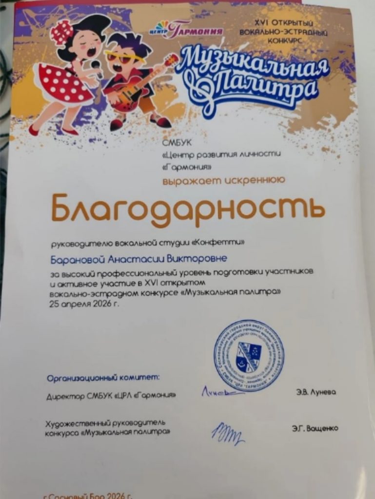 Сегодня, 25 апреля, в Центре развития личности «Гармония» состоялся XVI конкурс вокального мастерства «МУЗЫКАЛЬНАЯ ПАЛИТРА»