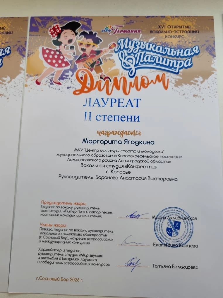 Маргарита Ягодкина — Диплом Лауреата II степени.