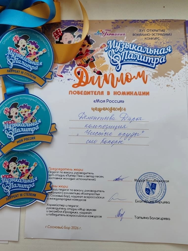 Дарья Дементьева — Диплом Лауреата III степени.