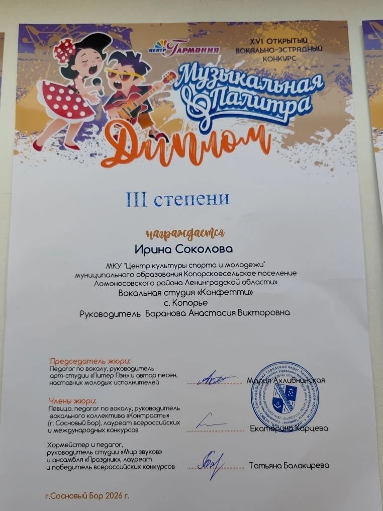Ирина Соколова — Диплом III степени.