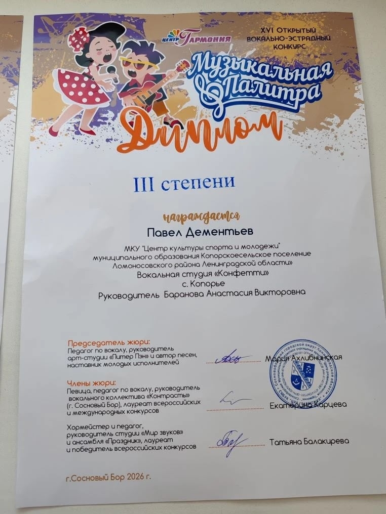 Павел Дементьев — Диплом III степени.