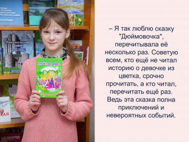 В рамках проекта Центра Культуры «Со страниц любимых книг», Анастасия Корякина, в роли своей любимой героини — Дюймовочки, даст всем ЗОЖ советы.