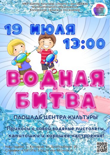 19 июля в 13:00 на площади центра культуры состоится «Водная битва»