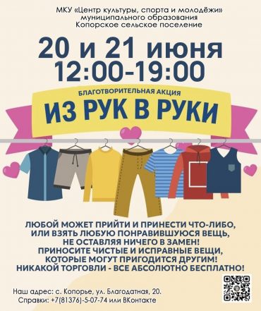 В «Центре культуры» организована Акция «Из рук в руки», которая будет проходить только 20 и 21 июня.