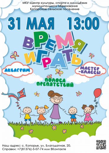 31 мая в 13:00 приглашаем всех, всех, всех на волшебный праздник, посвященный Дню защиты детей «Время поиграть»!