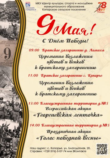 Приглашаем вас принять участие в мероприятиях, посвящённых празднованию 78-й годовщины Победы в Великой Отечественной войне.