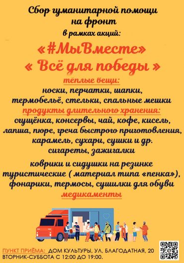 Уважаемые жители Копорского поселения! Продолжается сбор гуманитарной помощи на фронт в рамках акций «#МЫВместе» и «Всё для Победы».