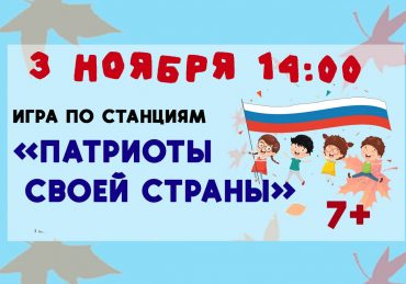 Юных гостей и жителей Копорья, 3 ноября в 14:00 приглашаем на увлекательную игру по станциям «Патриоты своей страны».
