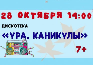 28 октября в 14:00 «Ура, каникулы!» — уже завтра супер дискотека для детей и подростков!