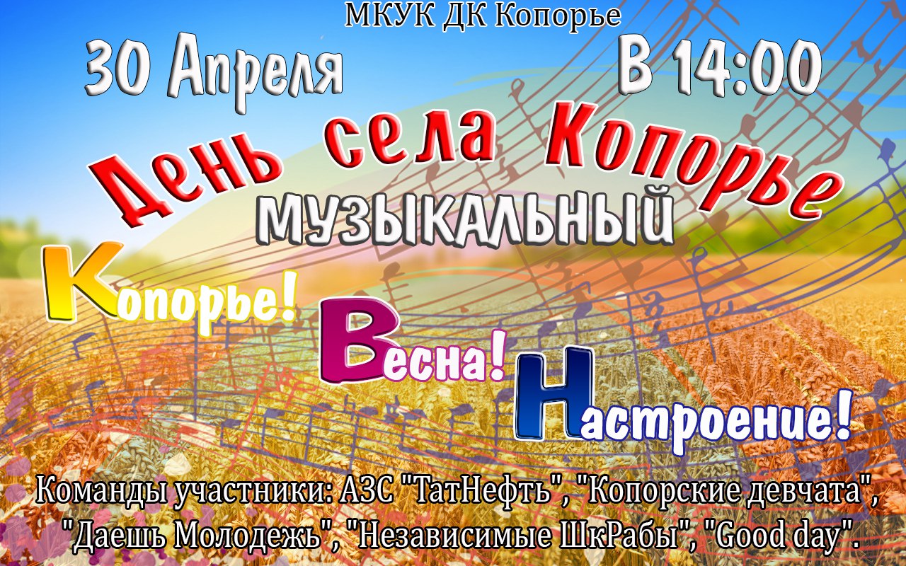 30 Апреля в 14:00 «День села Копорье». Музыкальный КВН Опубликовано 21.04.2018 в рубрике Афиша, Мероприятия, Новости