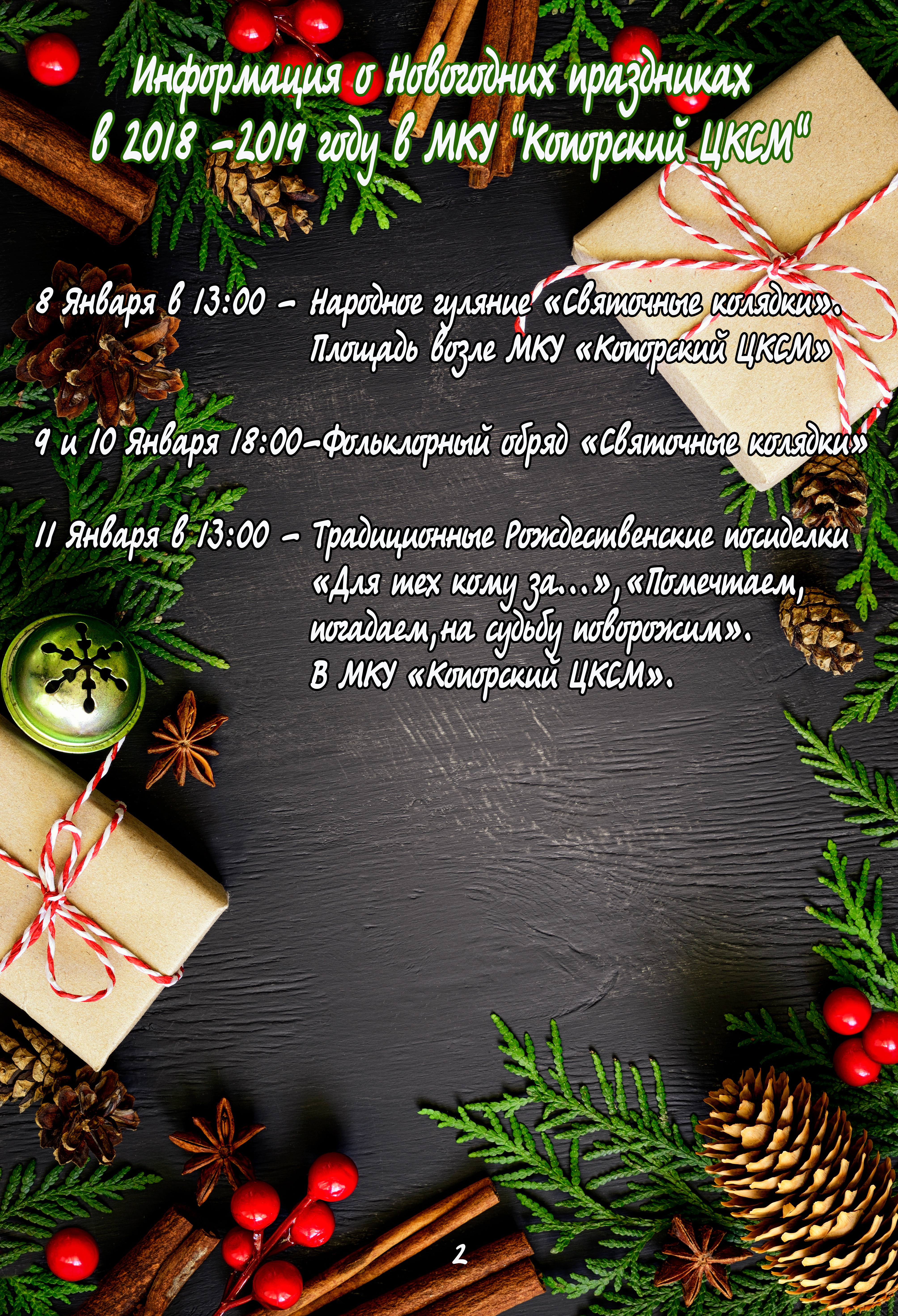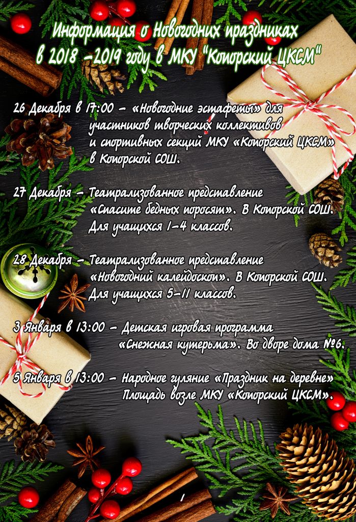 План новогодних праздников 2018-2019 год Опубликовано 14.12.2018 в рубрике Афиша, Информация о деятельности, Новости