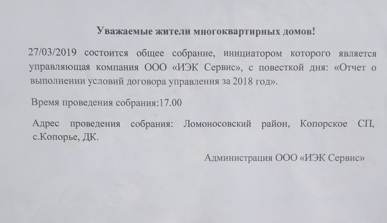27 марта в 17:00 собрание управляющей компании ООО «ИЭК Сервис» Опубликовано 26.03.2019 в рубрике Афиша, Новости