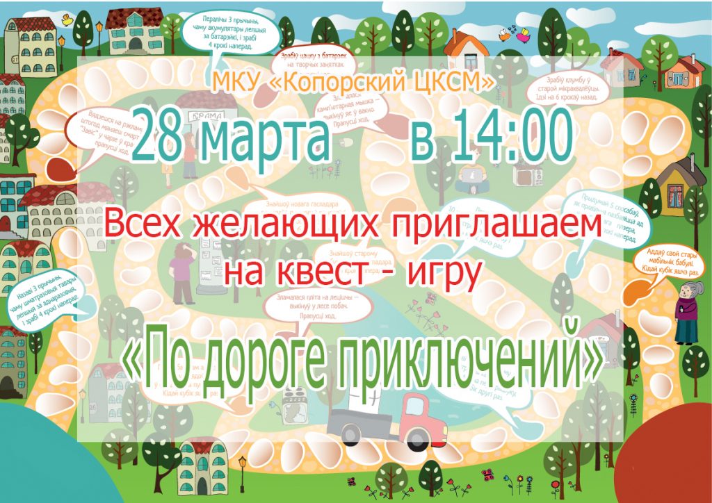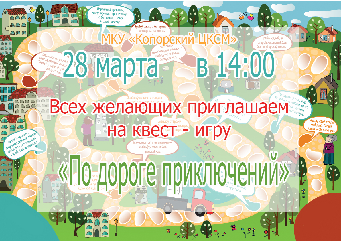 28 марта в 14:00 квест — игра «По дороге приключений» Опубликовано 27.03.2019 в рубрике Афиша, Новости
