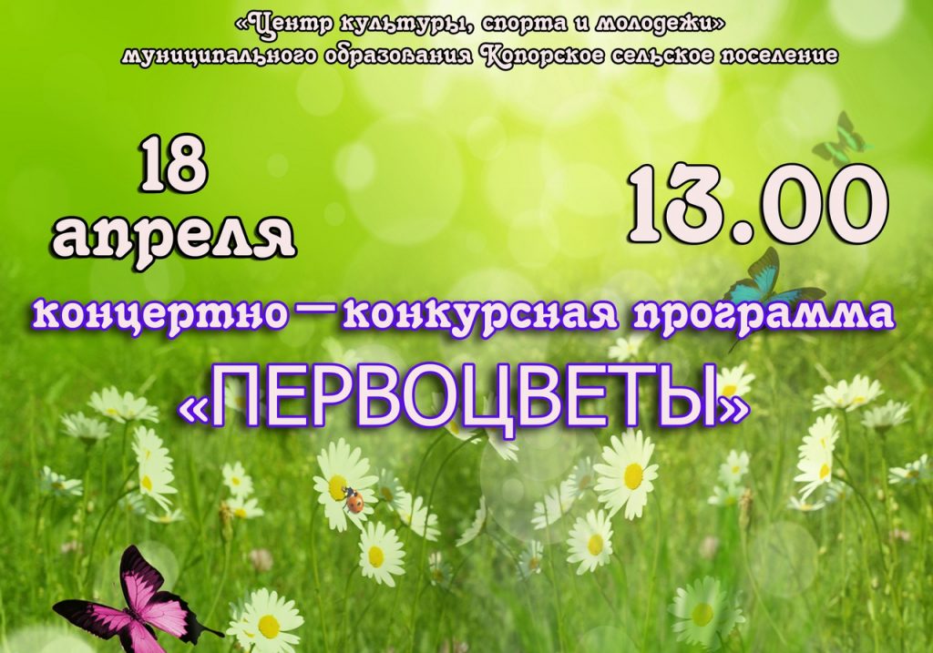 18 апреля в 13.00 приглашаем на концертно-конкурсную программу «Первоцветы» Опубликовано 12.04.2019 в рубрике Афиша, Новости