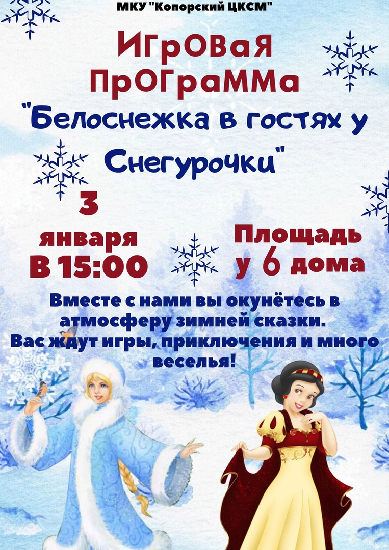 3 января прошла игровая программа для детей «Белоснежка в гостях у Снегурочки»