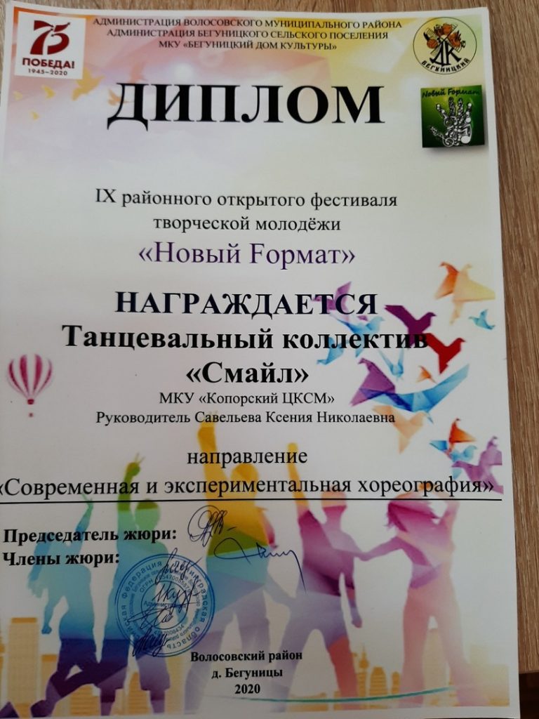 24 февраля в Бегуницком Доме культуры состоялся 9-й открытый конкурсный фестиваль творческой молодёжи Волосовского района «Новый Fормат», в котором приняли участие наши ребята: