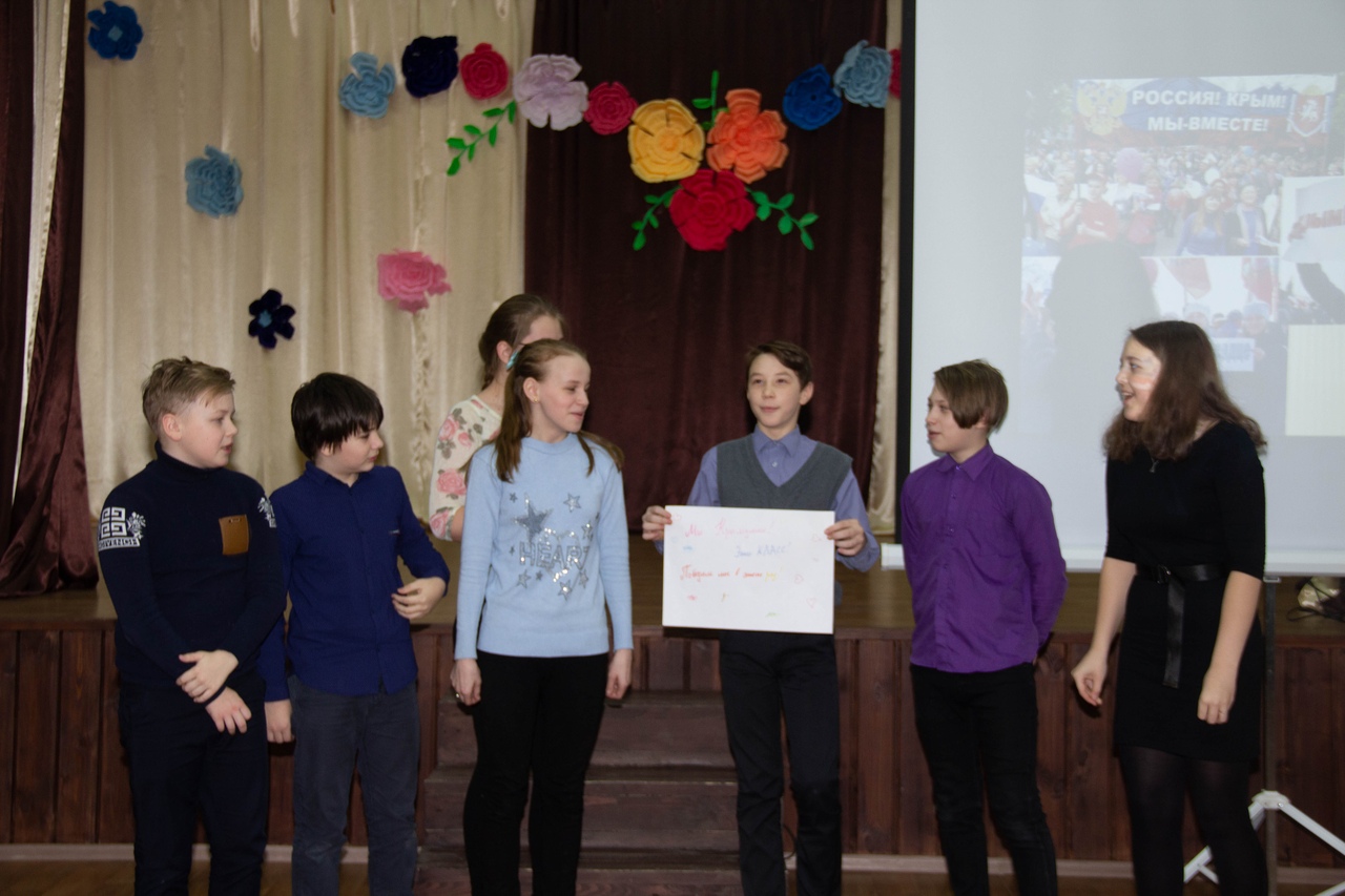18 марта в Доме Культуры прошло мероприятие «Путешествие по Крыму», с целью объяснить ученикам суть произошедшего исторического воссоединения России и Крыма и его значение для судьбы страны. Оказалось ребята не плохо ориентируются на известном полуострове и знают не мало достопримечательностей, и лишь «Медвежья гора» вызвала трудности в ее изображении.