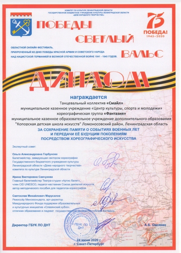 24 июня танцевальный коллектив «Смайл» принял участие в областном он-лайн фестивале » Победы светлый вальс» Опубликовано 30.06.2020 в рубрике Афиша, Новости 24 июня танцевальный коллектив «Смайл» принял участие в областном он-лайн фестивале » Победы светлый вальс»