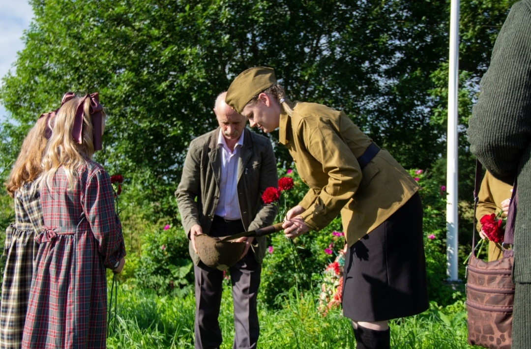 Акция «Земля доблести» продолжается. Творческое содружество: МКУ «Центр культуры, спорта и молодежи», Копорская библиотека, ИТЦ Ломоносовского района, музей «Копорская крепость» организовали мероприятие по забору земли около памятника курсантам Ново-Петергофского военно-политического училища войск НКВД. (Историческая справка: В район Копорья, где противник яростно атаковал важный узел дорог, в ночь на 31 августа 1941 года был переброшен батальон курсантов. Курсанты совершили подвиг во имя спасения измождённой, отходившей с боями 8-й армии. И обеспечили отход наших войск на новый рубеж. Когда курсанты пошли защищать Родину, их было 532 человека, а 3 октября, при присвоении звания младшего политрука, осталось только 72. Остальные были ранены или убиты).