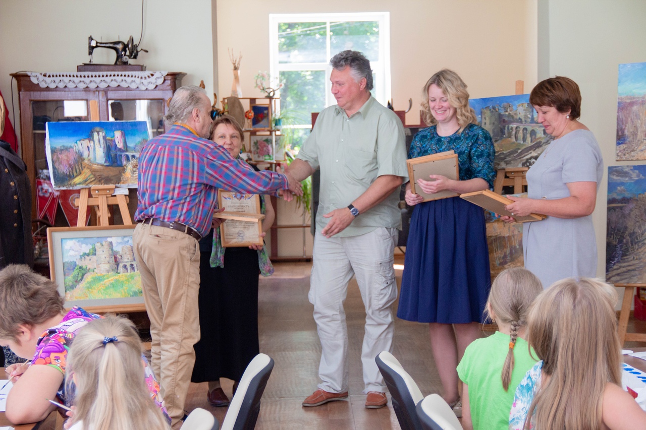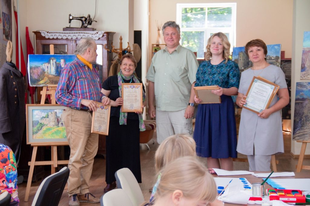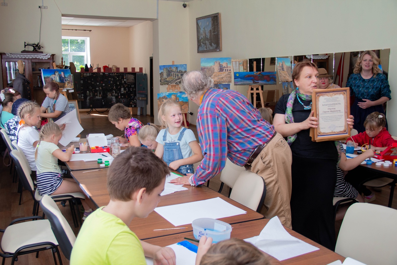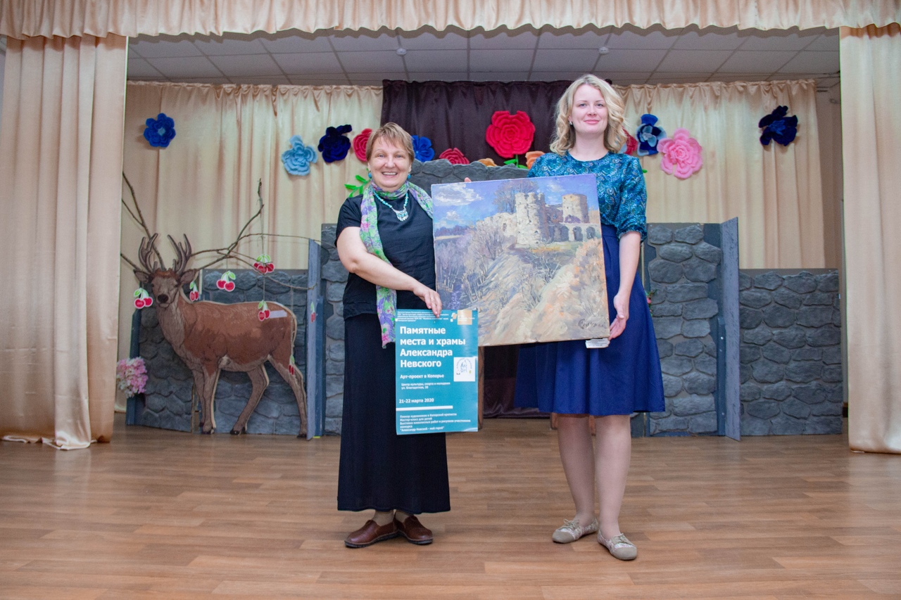 18 августа прошел 2 этап Арт-проекта «Памятные места и храмы Александра Невского», поддержанный Фондом президентских грантов. Участники проекта менеджер Наталья Булгакова и художественный руководитель Опульс Сергей Маркович представили работы художников, рассказали об Александре Невском, провели мастер-класс и наградили победителей конкурса рисунков «Александр Невский мой — герой!». В мероприятие приняли участие сотрудники музея «Копорской крепости», уже полюбившийся персонаж домовой — Копоряшка, подбадривал ребят и угощал сладостями. В финале мероприятия организаторы подарили работу Скачкова Валентина Николаевича, написанную в марте на пленэре у стен Копорской крепости. Его работу и работы других художников, а так же рисунки ребят, сделанные на мастер классе, можно посмотреть на выставке в нашем Центре культуры.