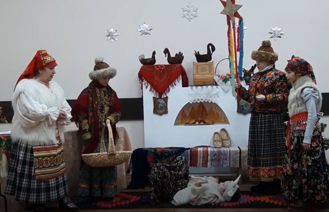 Участники детского театра «Дружба», руководитель Маркобрун В.Г., «поиграли в колядки» и показали, как нужно правильно колядовать.