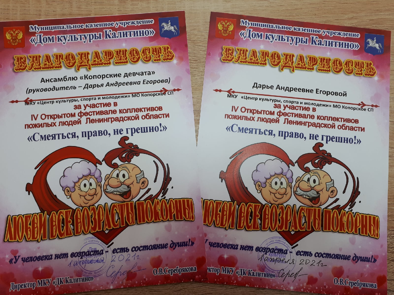 1 апреля, на IV Открытой ежегодной встрече творческих коллективов старшего возраста Ленинградской области, состоявшейся в «Доме культуры Калитино» Волосовского р-на, триумфально выступил творческий коллектив ДК с. Копорье — «Копорские девчата».