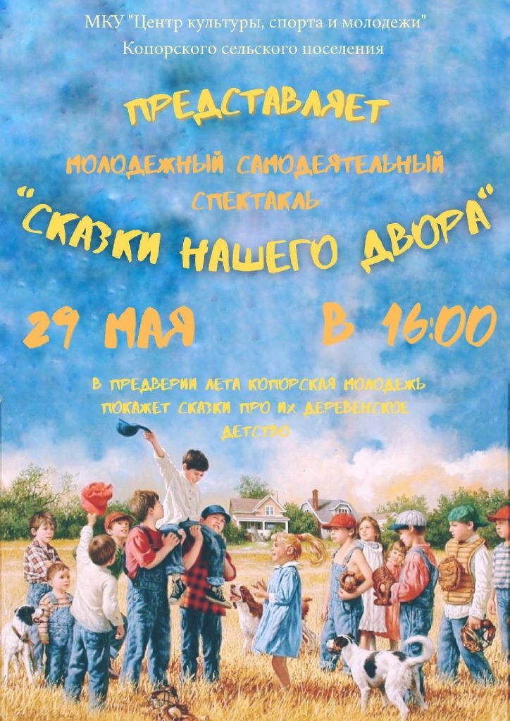 29 Мая в 16:00 Молодежный самодеятельный спектакль «Сказки нашего двора» Опубликовано 27.05.2021 в рубрике Афиша, Новости