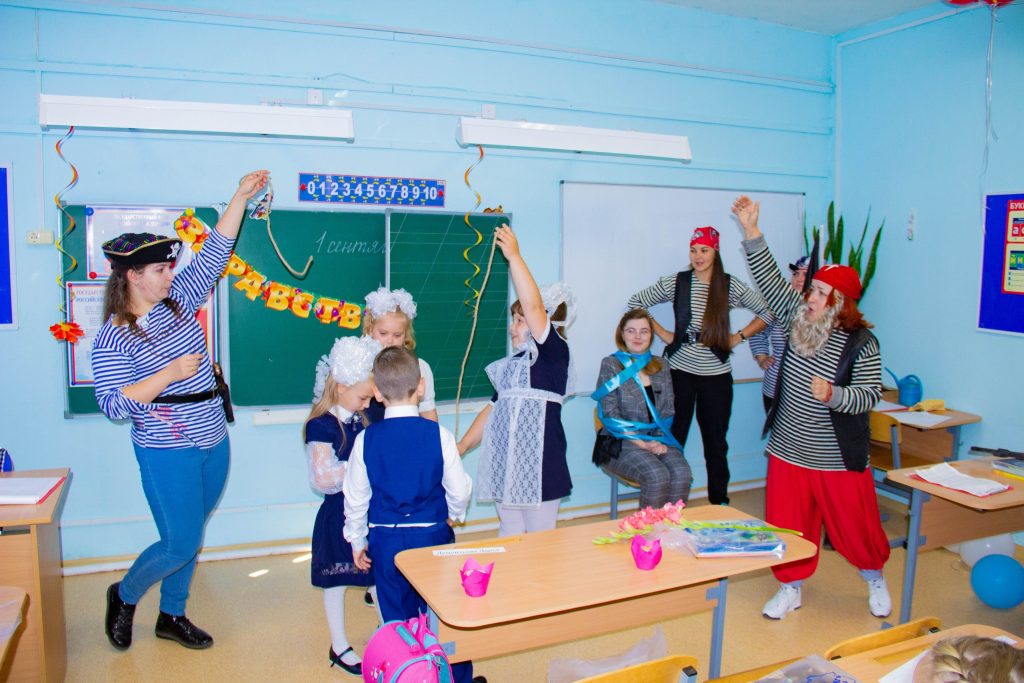 Поздравляем учеников 1 класса и их родителей — с началом учебного года!Они «влились» в школьную семью, а проверку «на прочность», им помогли пройти — грозные пираты, которые «посветили» ребят в настоящие ученики и дали добрые напутствия на дальнейшую отличную учёбу.