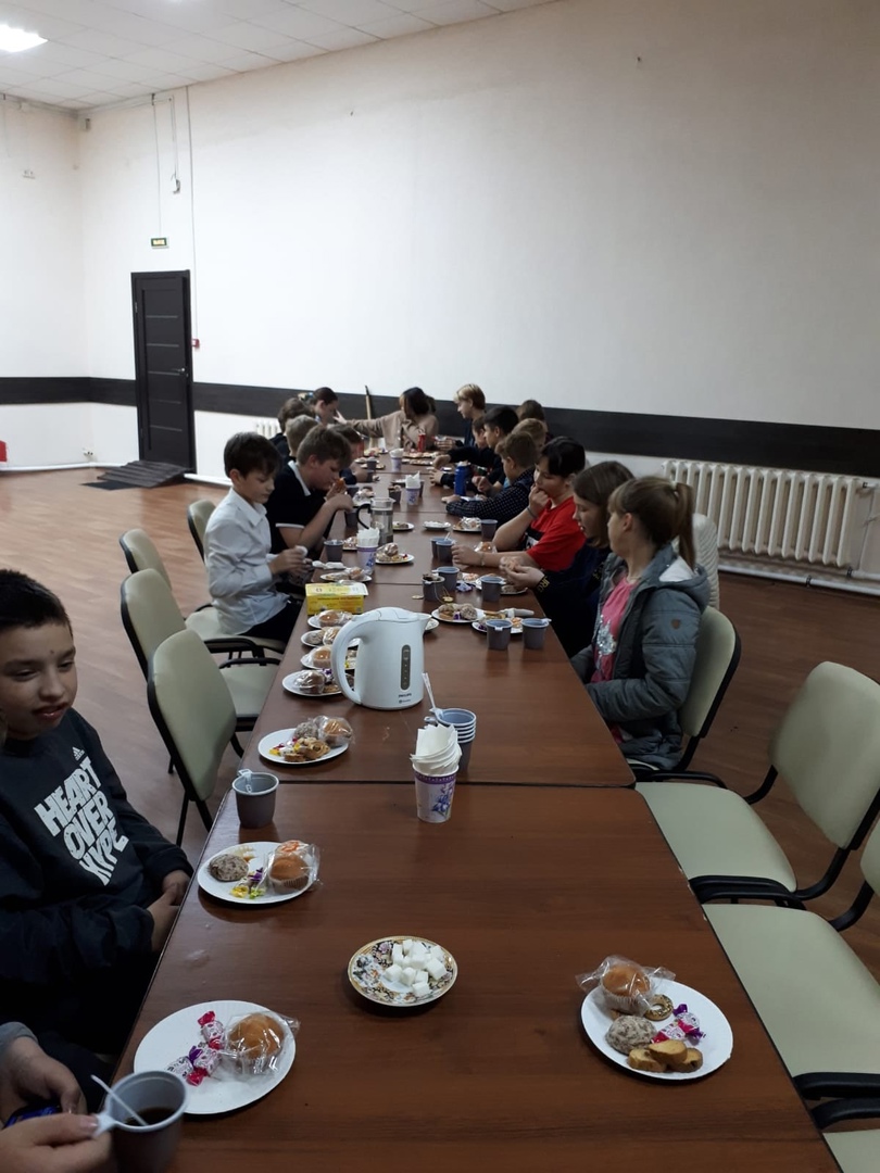 А затем, сотрудниками МКУ «Копорский ЦКСМ», для ребят было организованно чаепитие и просмотр художественного фильма, снятого на основе реальных событий, о геройском лётчике Девятаеве, совершившем во время ВОВ, побег на самолёте из фашистского плена.