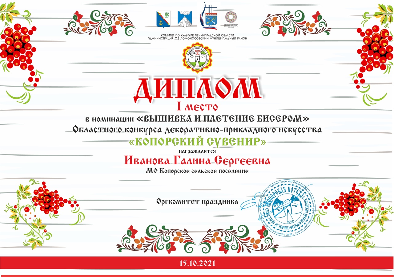 Иванова Галина Сергеевна, Копорское сельское поселение, номинация «Вышивка и плетение бисером»