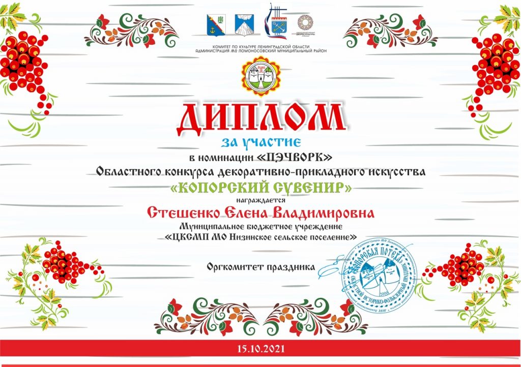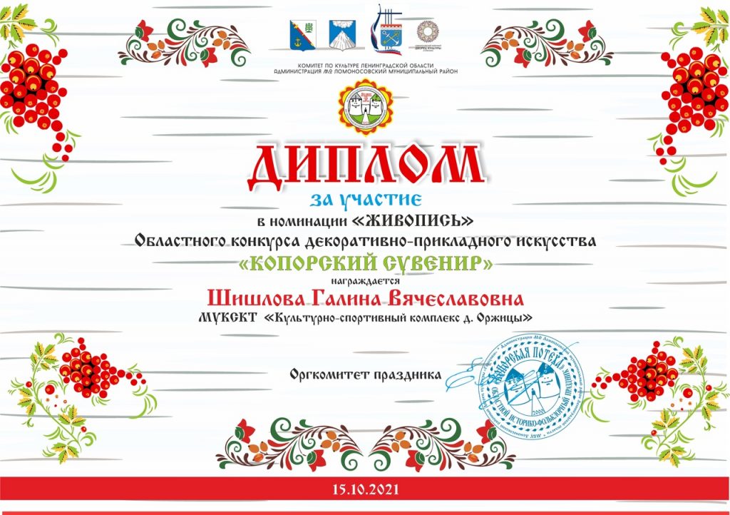 КОПОРСКИЙ СУВЕНИР НАГРАЖДЕНИЕ