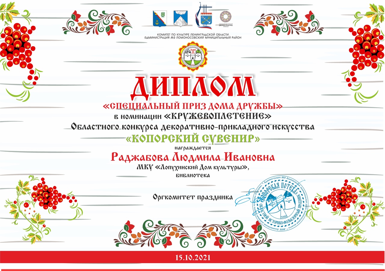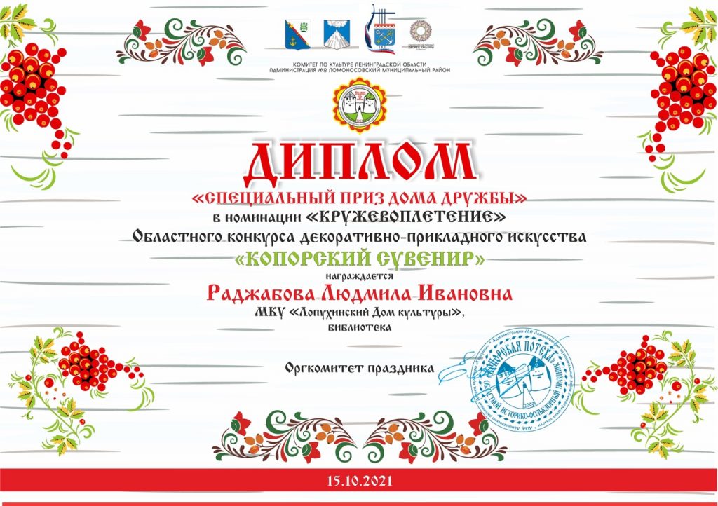 Раджабова Людмила Ивановна, МКУ «Лопухинский Дом культуры», специальный приз от Дома дружбы