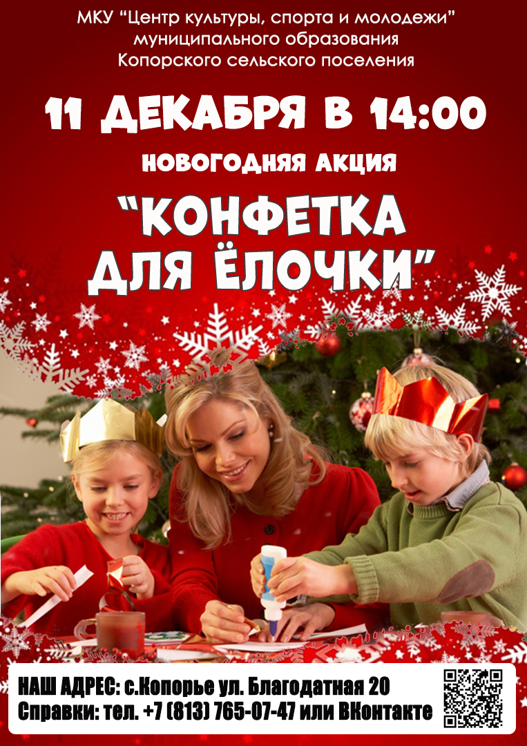 Дорогие друзья! Под таким названием Центр Культуры проводит новогоднюю акцию, чтобы «одеть» в праздничный наряд главную Ёлку Копорья. Мы снова приглашаем принять в ней участие всех неравнодушных жителей села.