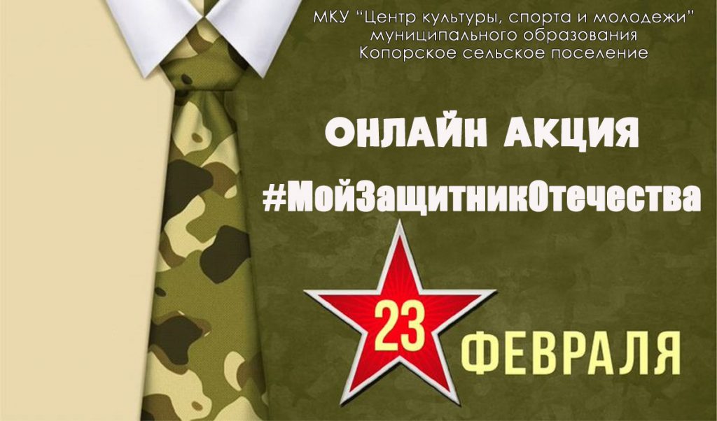 Выкладывайте в социальные сети фото Вашего защитника Отечества, поставьте хештег акции #МойЗащитникОтечества #КопорскийДК .