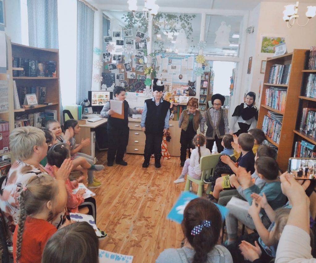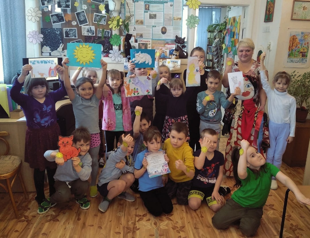 Три первых праздника Весны: Всемирный день кошек, Масленица и Международный женский день 8 марта — об этих праздниках ребята узнали интересные факты, дополняя рассказ библиотекаря своими знаниями — умнички! Приняли активное участие в викторине «Коты , живущие в мультфильмах!», выполнили коллективную поделку ( Солнышко — главный символ Весны) и с удовольствием смотрели выступление юных артистов, которые представили тематические басни » Кот и пёс» и » Как кот в собаки нанимался», представление «Ярмарка», стихотворение » Что такое Счастье?» (Касимов Матвей ,6 лет).
