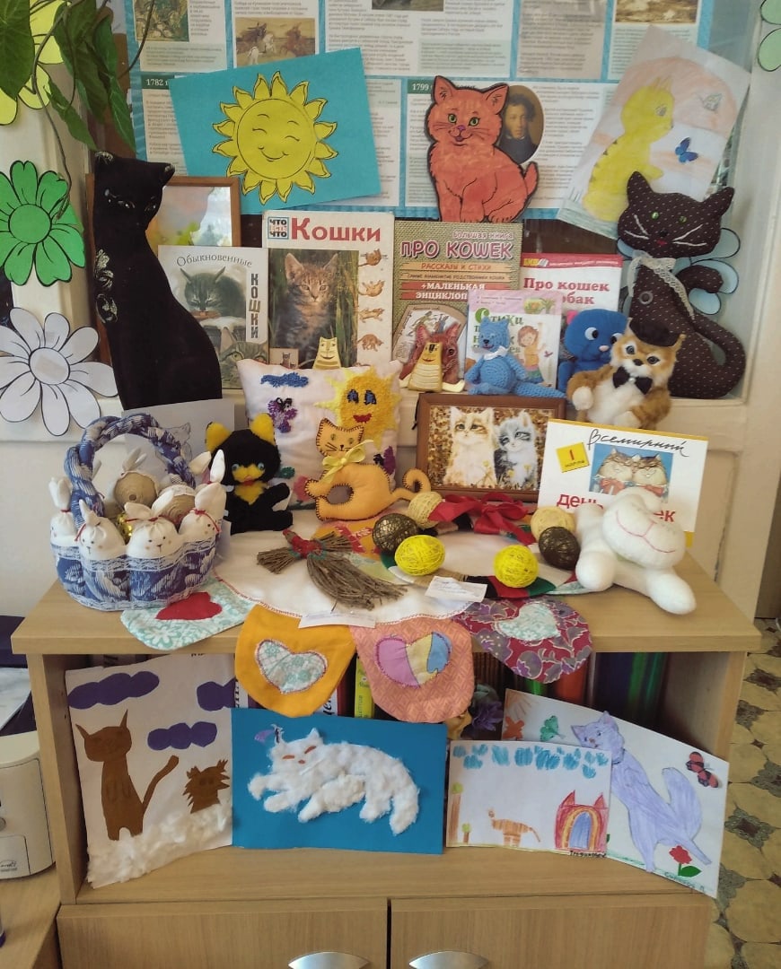 Ребята пришли к нам не с пустыми руками — принесли поделки , посвящённые Дню кошек. Спасибо!