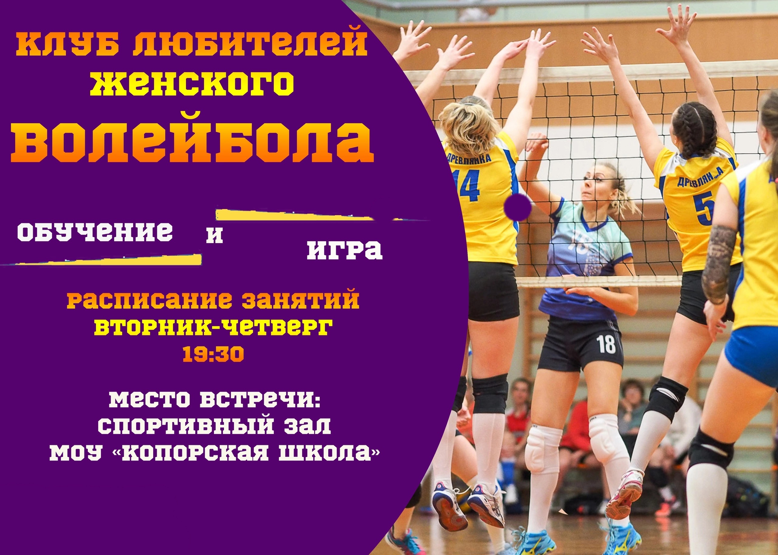 ⏰Каждый вторник и четверг в 19:30 мы встречаемся в спортивном зале МОУ «Копорская школа».