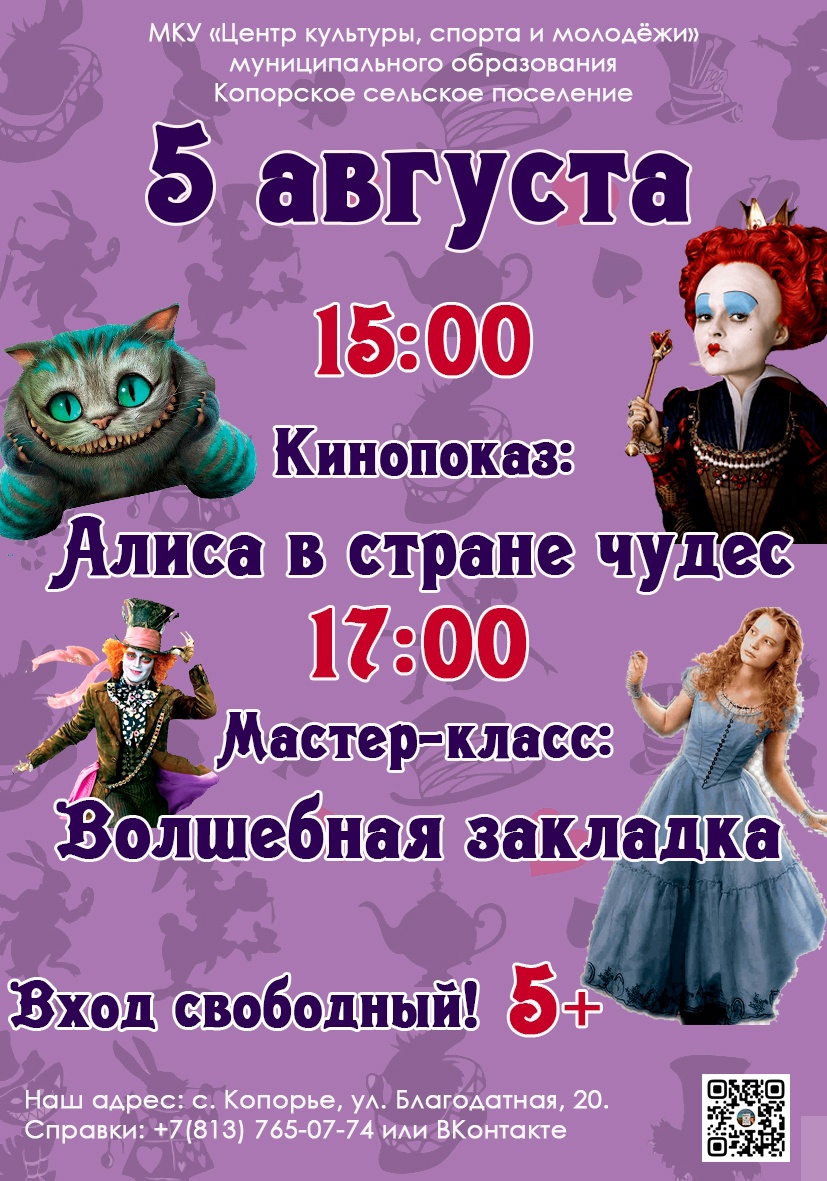 5 августа в 15:00 приглашаем всех на просмотр фильм «Алиса в стране чудес».