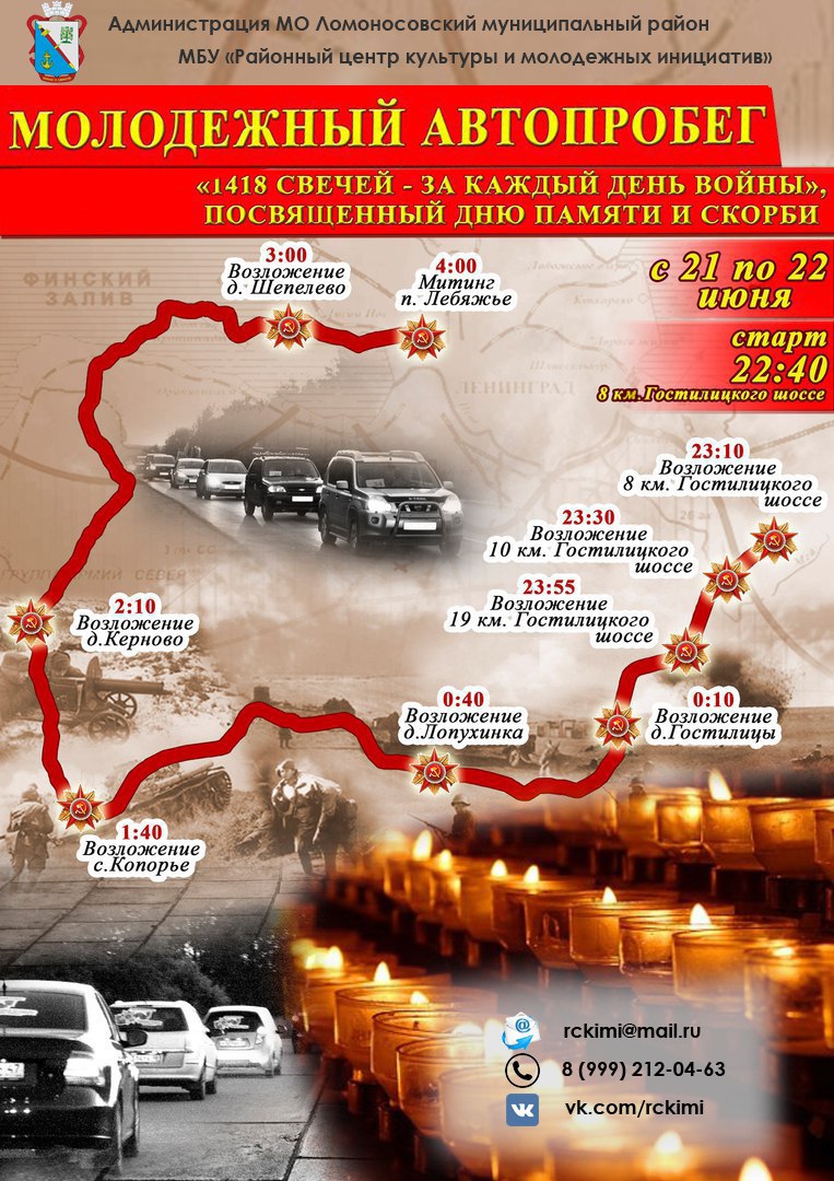 Продолжается прием заявок на участие в молодежном автопробеге «1418 свечей за каждый день войны», посвященном Дню памяти и скорби.