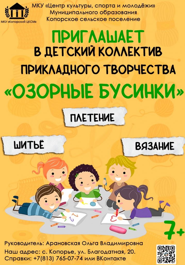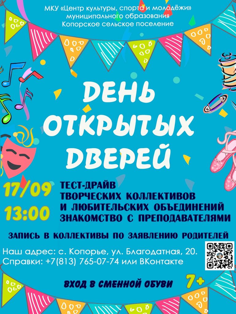 17 сентября в 13:00 МКУ «Центр культуры, спорта и молодежи»Копорье начнёт новый творческий сезон и откроет свои двери для всех желающих.
