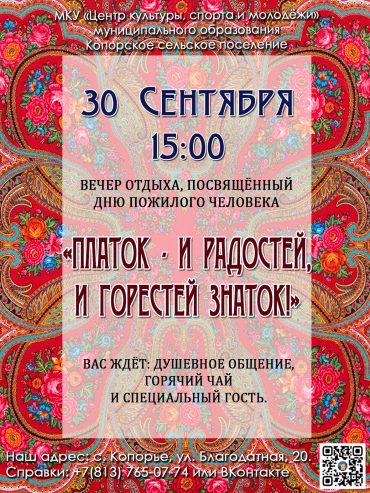 Приглашаем на вечер отдыха «Платок — и радостей, и горестей знаток!».