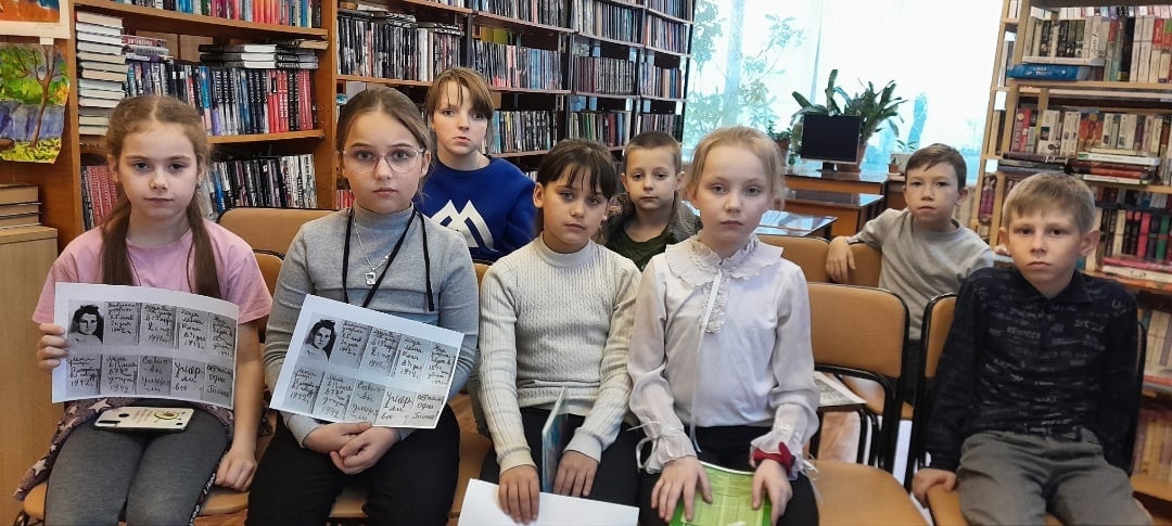 26 января в нашей библиотеке прошёл урок мужества » 9 строк о смерти» для учащихся Копорской ДШИ ( театральное отделение, руководитель Маркобрун В.Г).