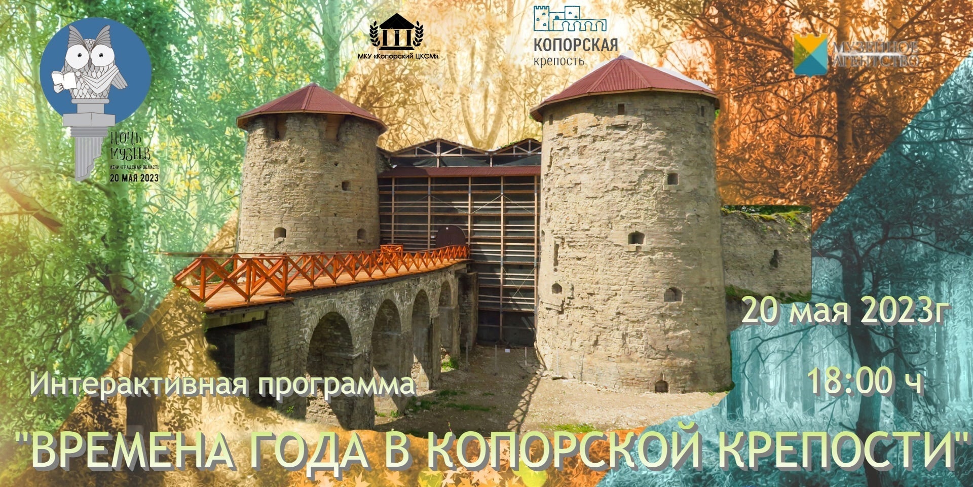 18:30 — 21:00 интерактивная программа с элементами театрализации «Времена года в Копорской крепости»: театрализованное представление, викторина, ремесленные и военные мастер-классы, костюмированные фотозоны, дегустация Иван – чая…и многое другое…