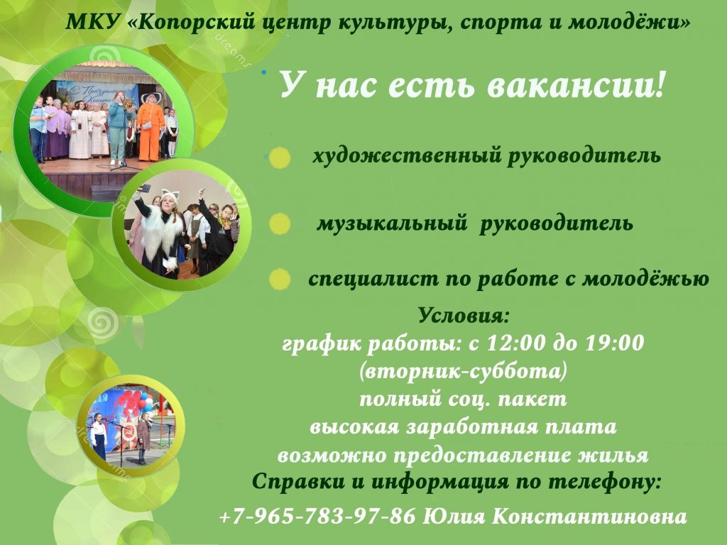 В МКУ «Центр культуры, спорта и молодёжи» открыты вакансии: