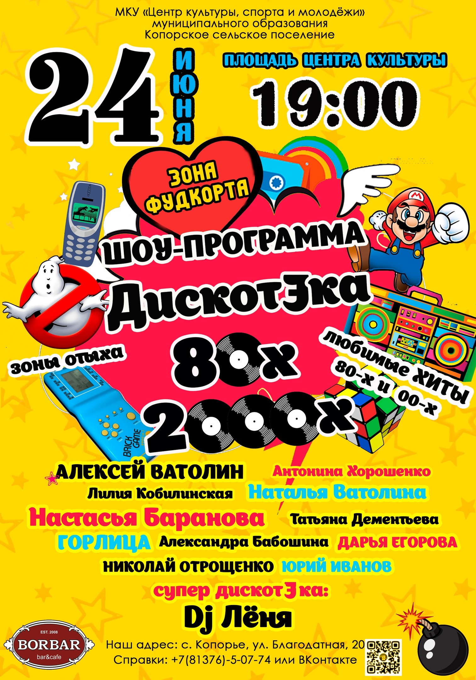 24 июня в 19:00 площадь центра культуры превратиться в машину времени и перенесёт всех гостей на супер вечеринку «ДискотЭка 80-х — 2000-х»