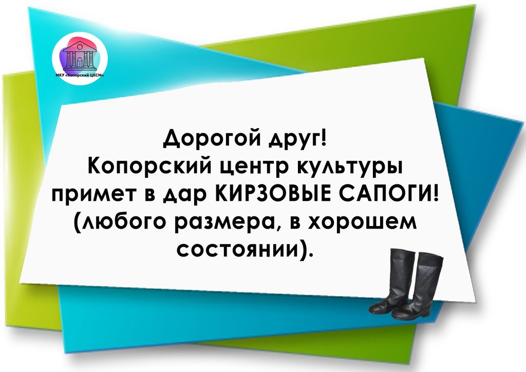 Копорский центр культуры примет в дар кирзовые сапоги Опубликовано 02.04.2025 в рубрике Афиша, Новости
