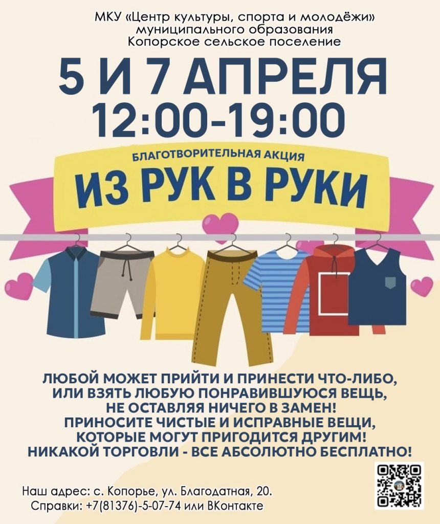 В «Центре культуры» организована Акция «Из рук в руки», которая будет проходить только 5 и 7 апреля.