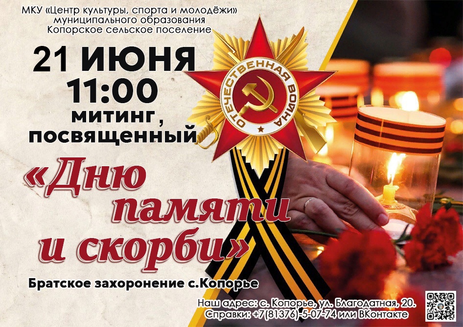 21 июня в 11:00 приглашаем на митинг, посвящённый «Дню памяти и скорби». Опубликовано 18.06.2025 в рубрике Афиша, Новости 21 июня в 11:00 приглашаем на митинг, посвящённый «Дню памяти и скорби».