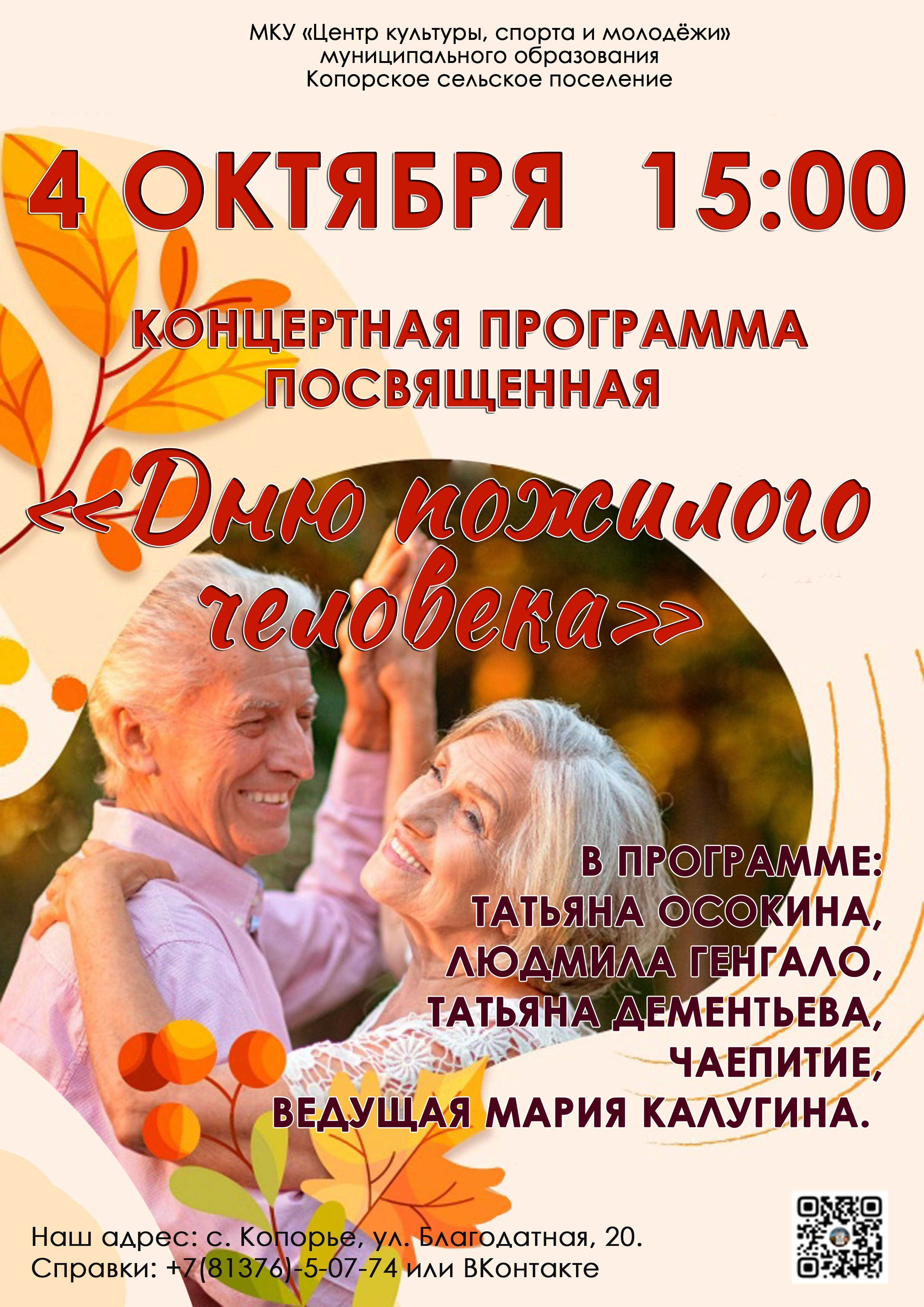 ❤Сердечно приглашаем вас на праздник, посвящённый Международному Дню пожилого человека, который пройдёт